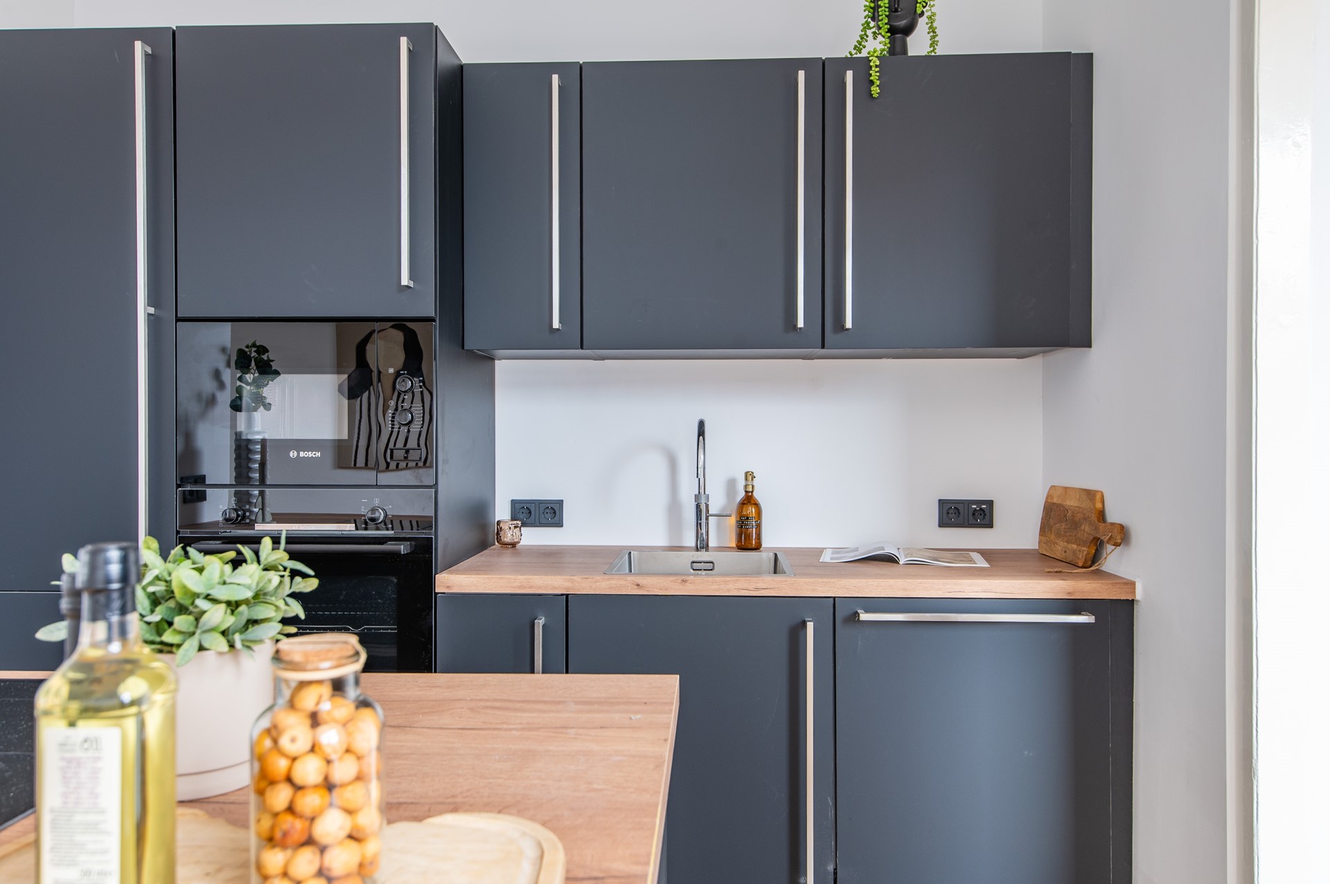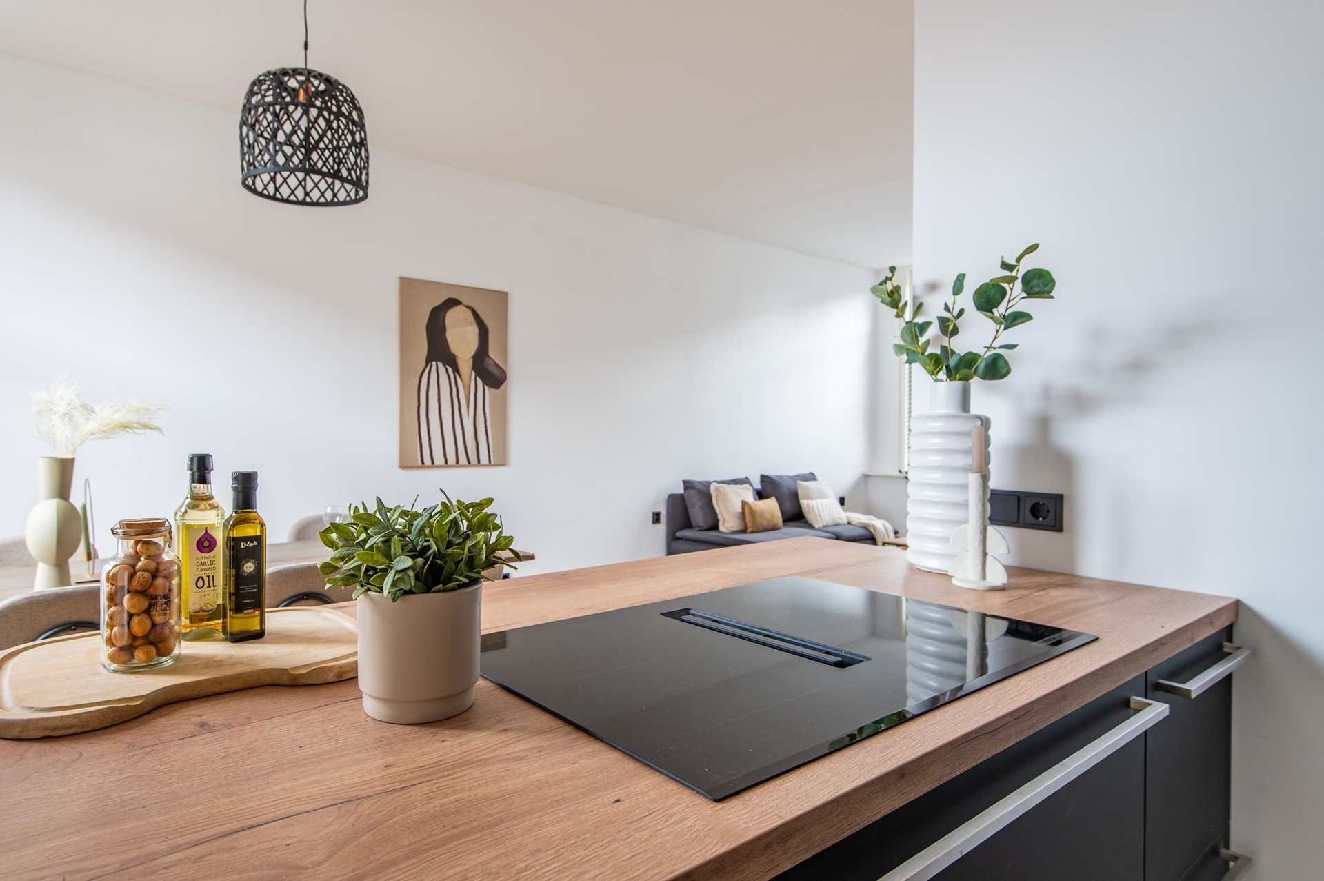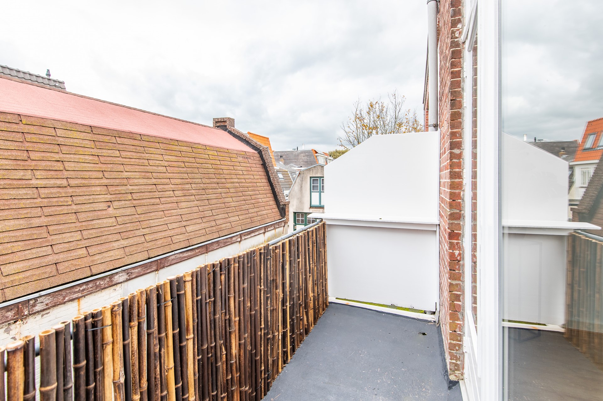 Op de overloop bevindt zich de garderobe, vrijdragend toilet en toegang tot de slaap-/werkkamer en de woonkamer aan de voorzijde. Nu kun je in de woonkamer met hoog plafond aan de voorzijde genieten van het gezellige straatbeeld en is aan de andere kant van de kamer de eettafel geplaatst direct bij de nieuwe open keuken. De keuken is nieuw en heeft een rechte opstelling met daarvoor een schiereiland. Het geheel is voorzien van inbouwapparatuur waaronder een inductiekookplaat met ingebouwde afzuigunit, vaatwasser, magnetron, heteluchtoven, koel-/vrieskast en een Quooker. Alleen nog boodschappen doen en de thuiskok kan hier de lekkerste maaltijden bereiden. Naast de keuken is de bijkeuken met opstelplaats voor de wasmachine. Aan de achterzijde is het balkon dat met dubbele openslaande deuren bereikbaar is en op een zonnige dag een verlening van je leefruimte.