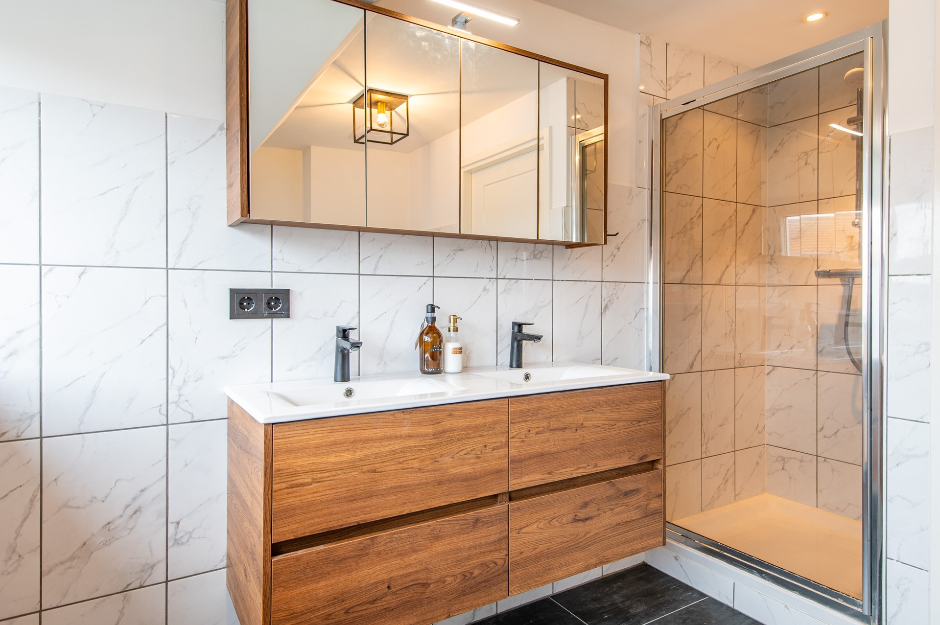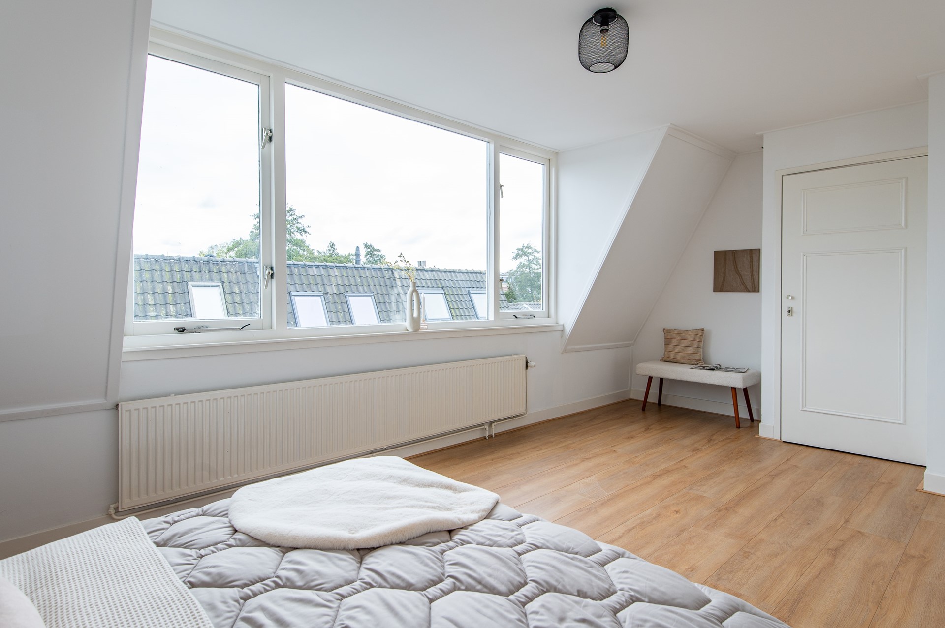 Boven zijn er 2 royale slaapkamers en een ruime badkamer met aan de achterzijde over nagenoeg de gehele breedte een dakkapel. De nette badkamer is voorzien van een ligbad, vrijdragend toilet, douchecabine en wastafelmeubel. Er is door de dakkapel een raampartij zodat er daglicht in de badkamer komt en er natuurlijk geventileerd kan worden. Naast de badkamer is een slaapkamer aan de achterzijde en aan de voorzijde is de zeer ruime hoofdslaapkamer met dakkapel. In de hoofdslaapkamer is een kast met de nieuwe cv-ketel.