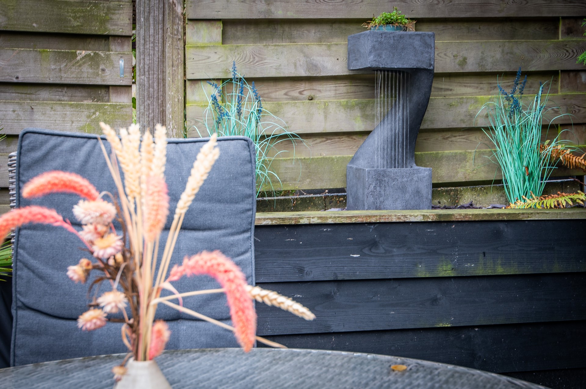 Beneden is de ruime woonkeuken met vloerverwarming, wat een sfeervolle ruimte is en voor menig hobbykok een droom is. De keuken is geplaatst in een hoekopstelling en is voorzien van een luxe fornuis met 3 ovens en een 5-pits gaskookplaat, daarboven is een geïntegreerde afzuigschouw. Tevens is er een aparte combimagnetron. Een vaatwasser en grote Amerikaanse koelkast met vriezer ontbreken niet en de apparatuur is geheel in lijn met de keuken in landelijke stijl uitgevoerd. Aansluitend is er een bijkeuken met opstelplaats voor de wasmachine en droger en garderobe. Vanuit zowel de bijkeuken en de keuken is de achtertuin bereikbaar. Als het zonnetje schijnt kan de schuifpui worden geopend en is het beschutte terras een heerlijke plek voor de lunch. In de diepe tuin zijn meerdere terrassen aangebracht zodat je kunt genieten van de zon of juist van de schaduw. Achter in de tuin is de ruime berging, waar naast tuinspullen ook een motor in geplaatst kan worden.