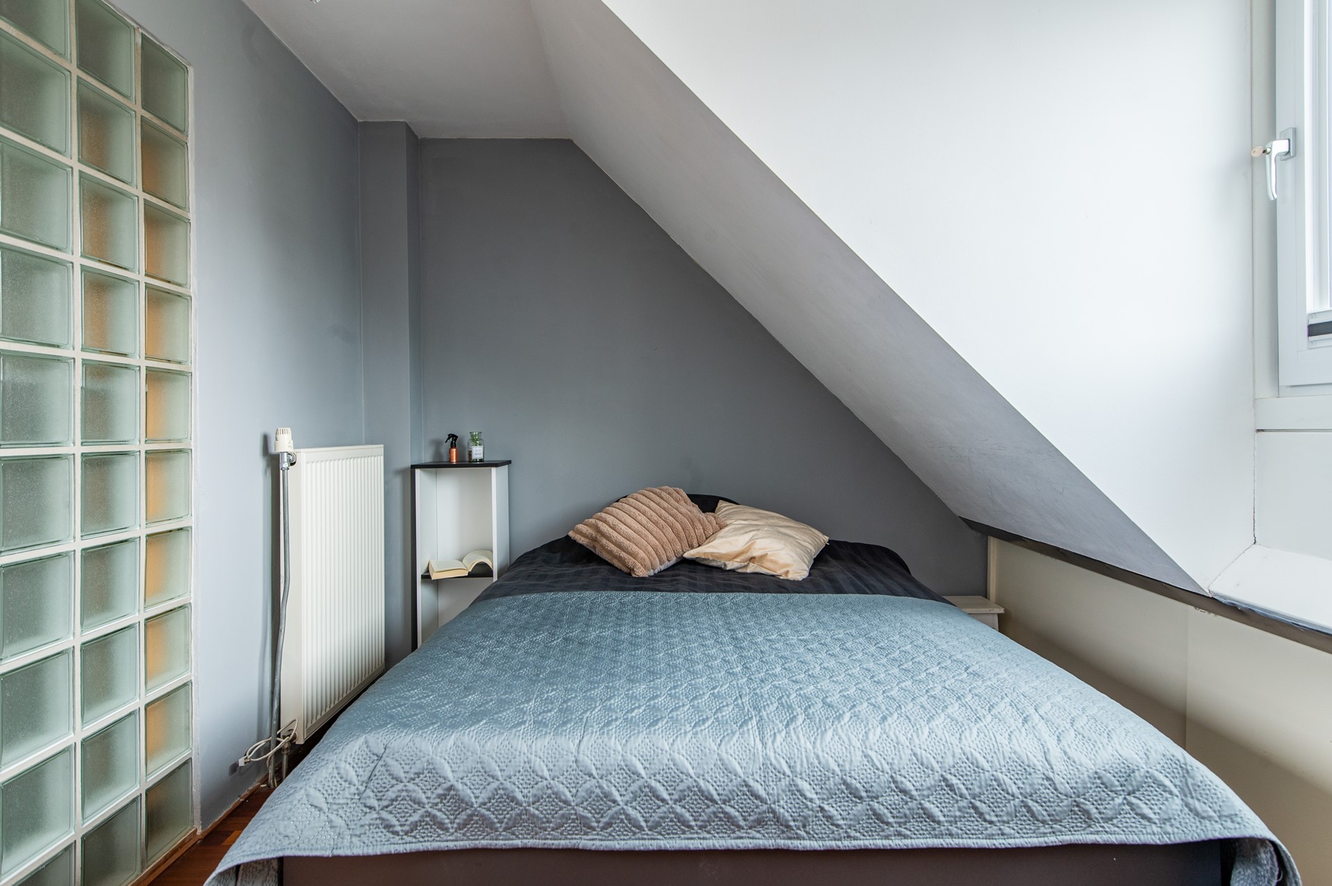De zolder heeft een kleine voorzolder met toegang tot de bergvliering. De zolder is nu in gebruik als een grote slaapkamer en hobbyruimte met dakkapel en dakraam. Er is alle ruimte voor een tweepersoonsbed, kledingkast en groot bureau waar ook een goede gameplek gerealiseerd kan worden. Dit is voor een thuiswonend studerend kind een heerlijke ruimte.
