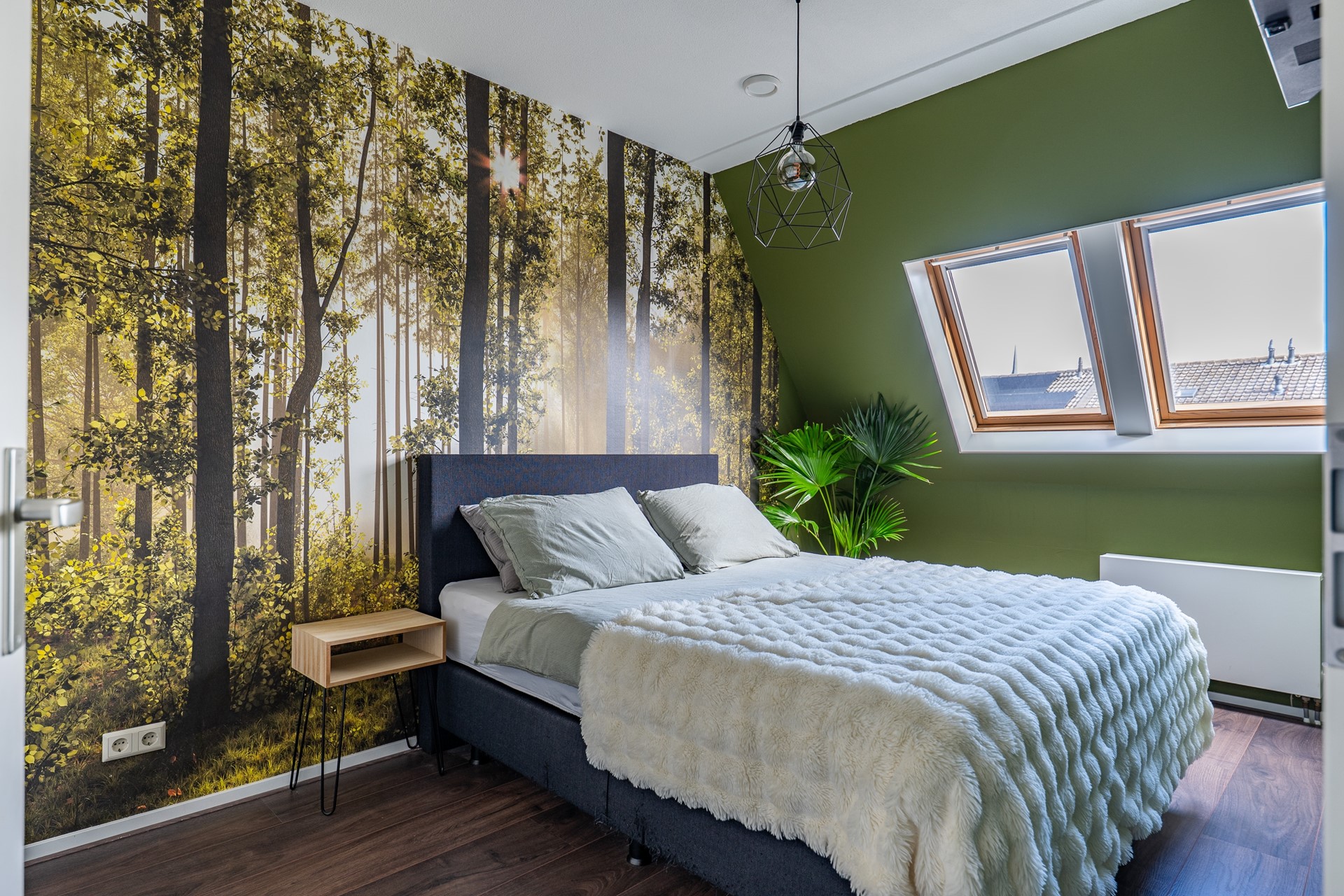 De overloop geeft toegang tot de 3 slaapkamers en de badkamer. De badkamer heeft een douche, afgeschermd vrijdragend toilet, design radiator en wastafelmeubel met spiegel. Het geheel is uitgevoerd in grijstinten gecombineerd met witte badkamermeubels. Daarnaast is aan de voorzijde een slaapkamer van goed formaat met een leuke doorkijk in de straat. Aan de achterzijde is de hoofdslaapkamer met twee grote dakramen en ingebouwde nis, waar je voor je gaat slapen je boek terug kan leggen of nog een blik kan werpen op foto’s met een mooie herinnering. Naast de hoofdslaapkamer is de derde slaapkamer met dakraam die ook een mooie grote heeft om te gebruiken als thuiswerkplek.