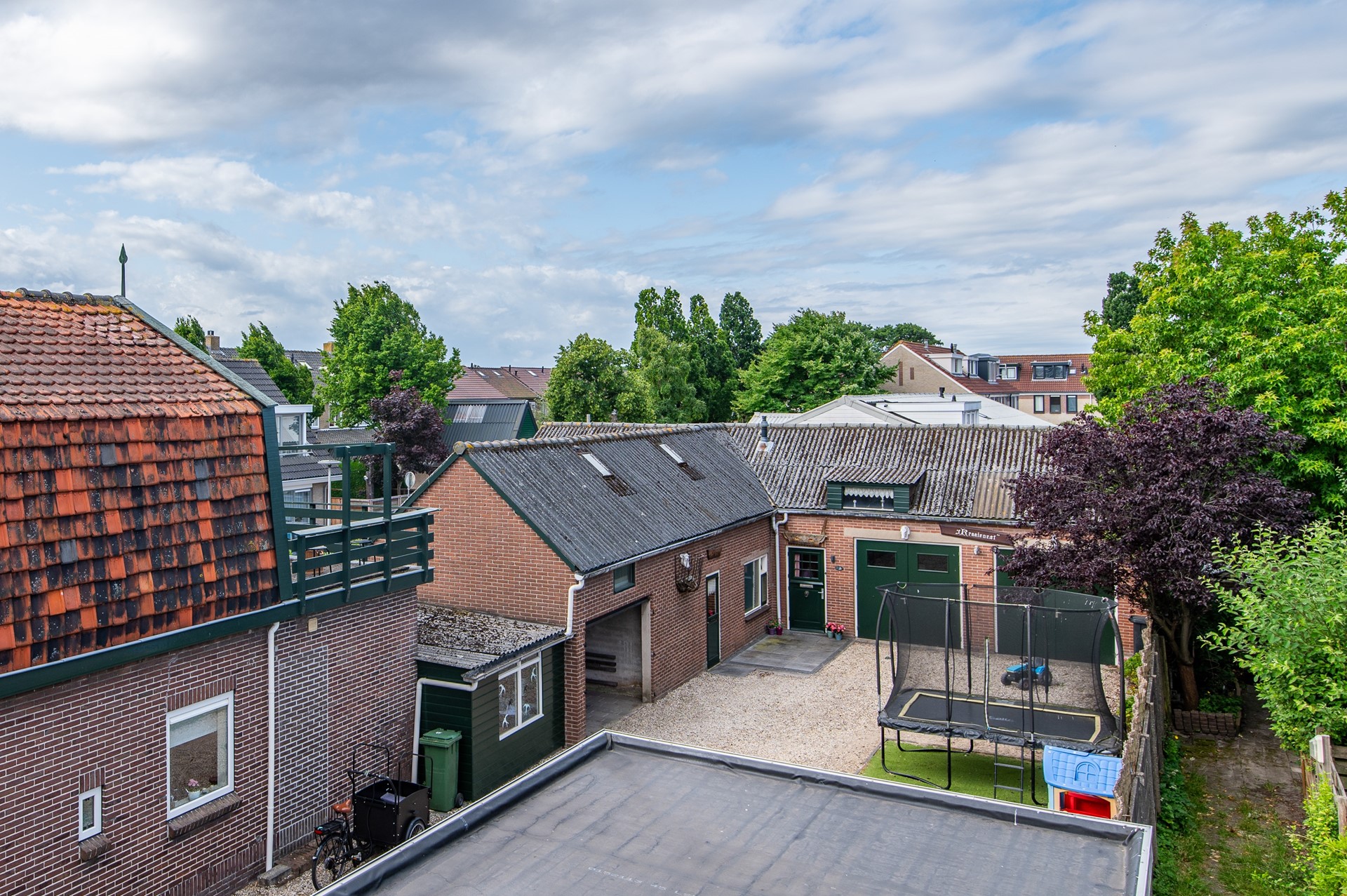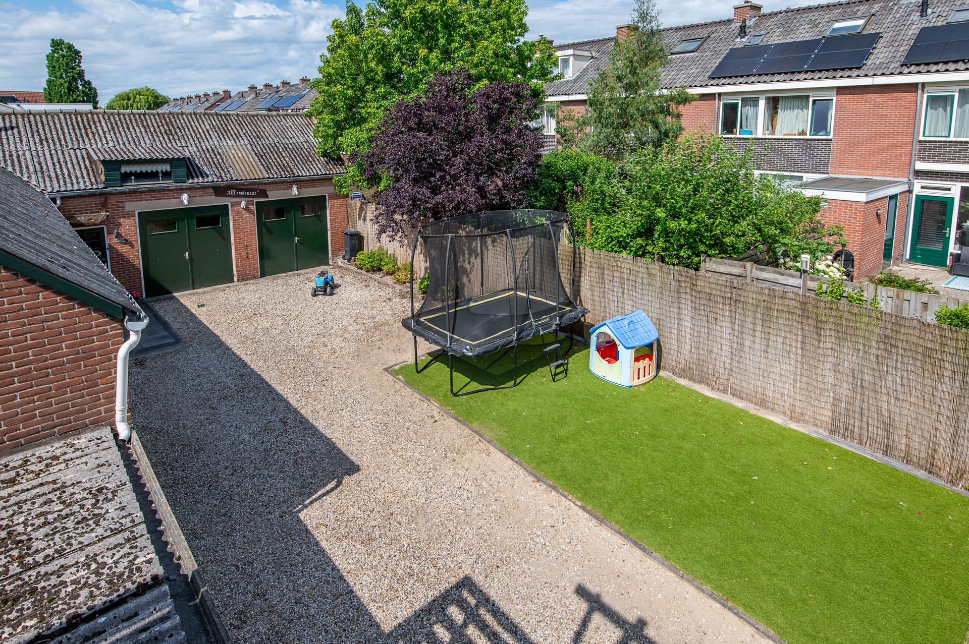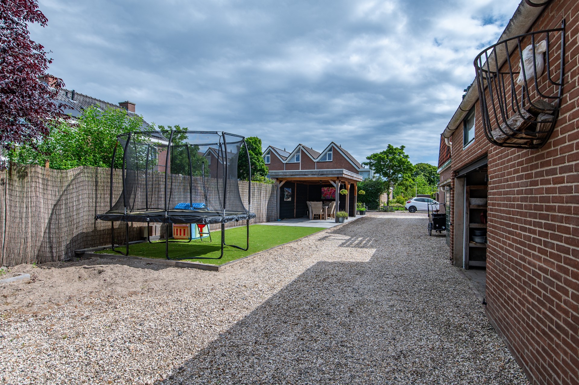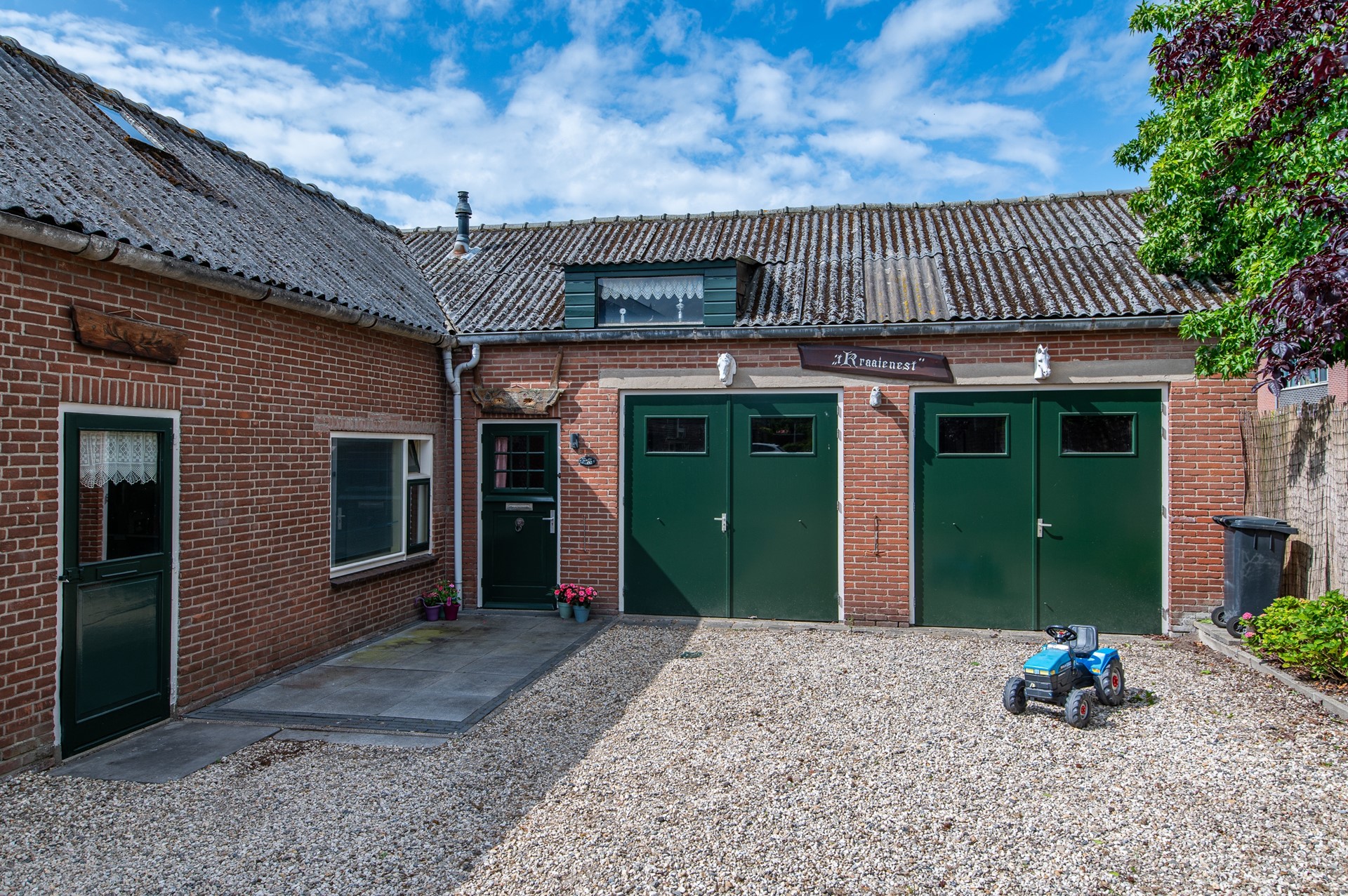 Uniek aan deze woning is dat er een grote dubbele garage is met tweemaal een dubbele toegangsdeur. Deze ruimte is ideaal voor de actieve klusser die extra ruimte thuis nodig heeft of voor het stallen van een motor of oldtimer. Boven deze garage en het huis is een bergzolder gemaakt die via een trap bereikbaar is.