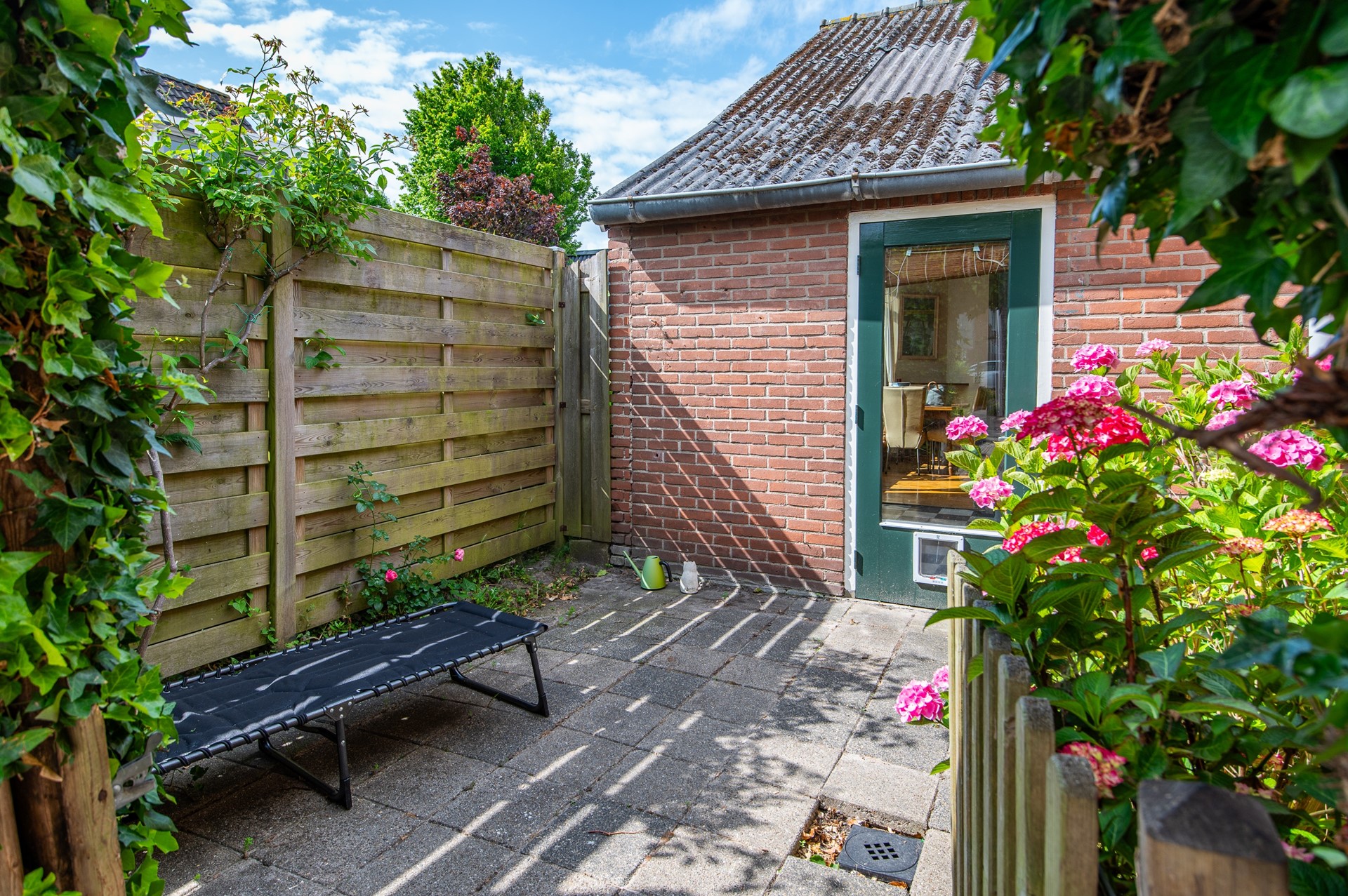 Vanuit de keuken is de tuin bereikbaar die volledig is omheind en nu een doorgang heeft naar de tuin van huisnummer 157. Hier kan je lekker rustig genieten van een kopje koffie, een net bereide maaltijd of wie weet komt er wel een barbecue als aanvulling op de nieuwe keuken.